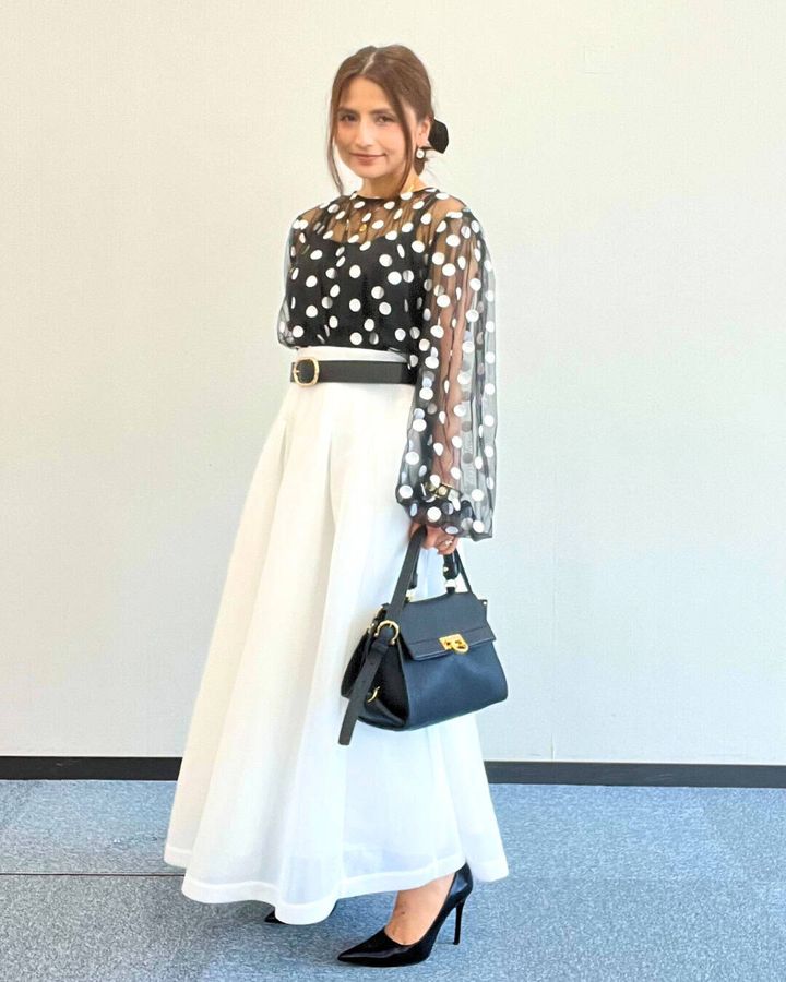 大人かわいいポルカドットのシアーブラウス。キャミもセットなのでインナーに悩まず楽ちんです。一枚で存在感あるので、シンプルボトムスと合わせるだけでキレイめにもカジュアルにも、華やか旬スタイルが完成します!