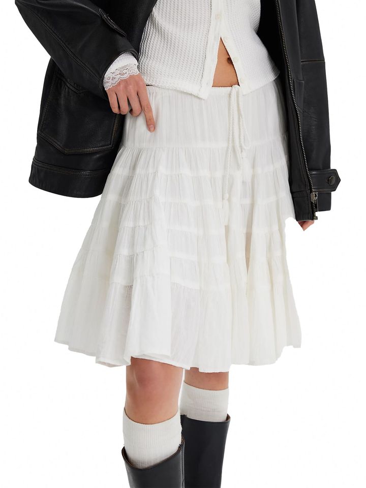 スリップスカートからフリルのミニ、プリーツキルトにティアードマキシまで──この夏は数え切れないほどのスカートがトレンドを席巻した。なかでも印象的だったのは、シエナ・ミラーを思わせるボヘミアンの再来。Y2Kに夢中なZ世代は、オフショルダーのトップやスパゲッティストラップのキャミソール、さらには“飾りベルト”までも組み合わせて楽しんでいた。