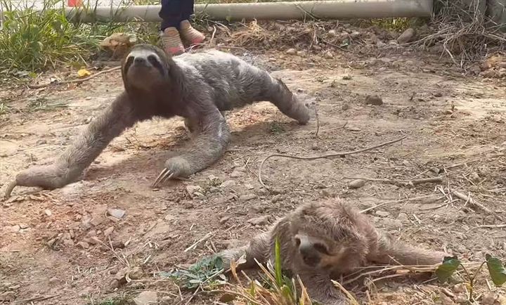 山火事が発生したのは、南米のボリビア東部にあるサンタクルス県。ナマケモノの親子は山火事から逃れることはできたようですが、その後近郊の町で野良犬に追いかけられた際、母親の腕から赤ちゃんが落ちてしまったのだそうです。