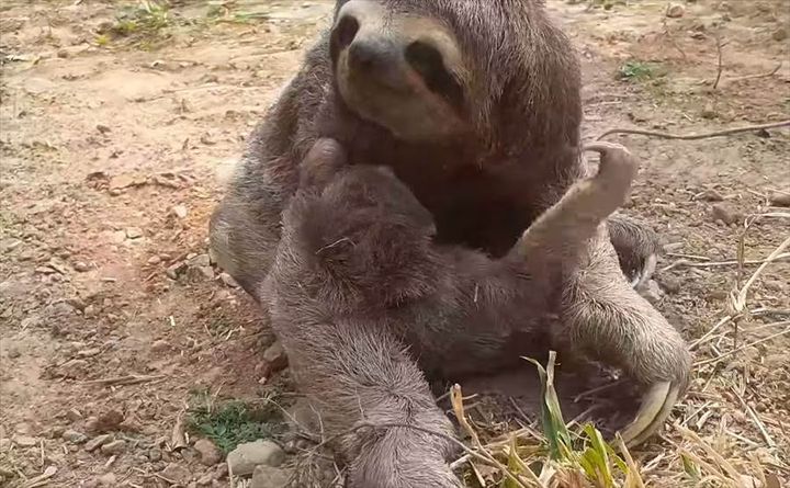 2. 山火事ではぐれてしまったナマケモノ親子の感動の再会!わが子を抱き寄せる母の姿にグッとくる