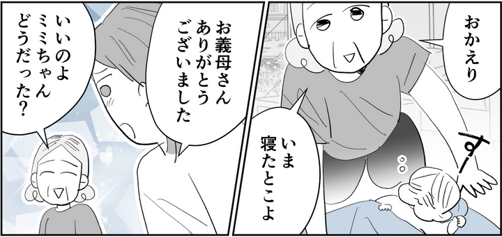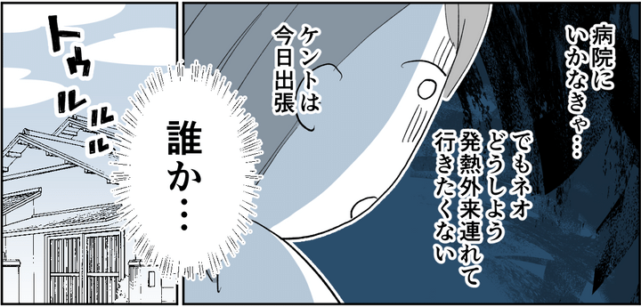義母の襲来もなくなり、快適だと思っていたあるの日こと。ケントが出張で不在の日に限ってミミが発熱したのです。パニックの私。子ども2人を連れて病院に行くべきなのですが、生後まもなくのネオを発熱外来に連れて行くのはちょっと気が引けます。私はすがるような思いで義母に連絡。すると義母はすぐにうちまで来てくれたのです。
