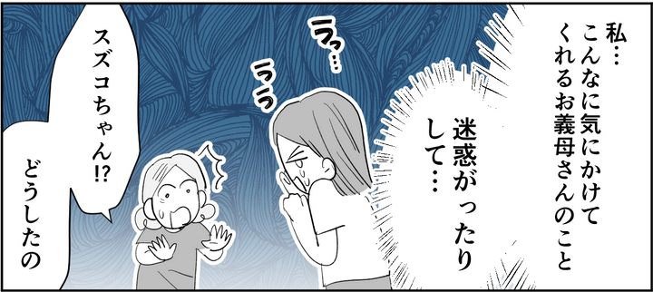 ピンチのときだったからでしょう、義母の優しさが余計に身に染みました。こんなに優しい義母なのに、私は邪険に扱ったりして……。自分のしてきた行動を心底後悔しました。