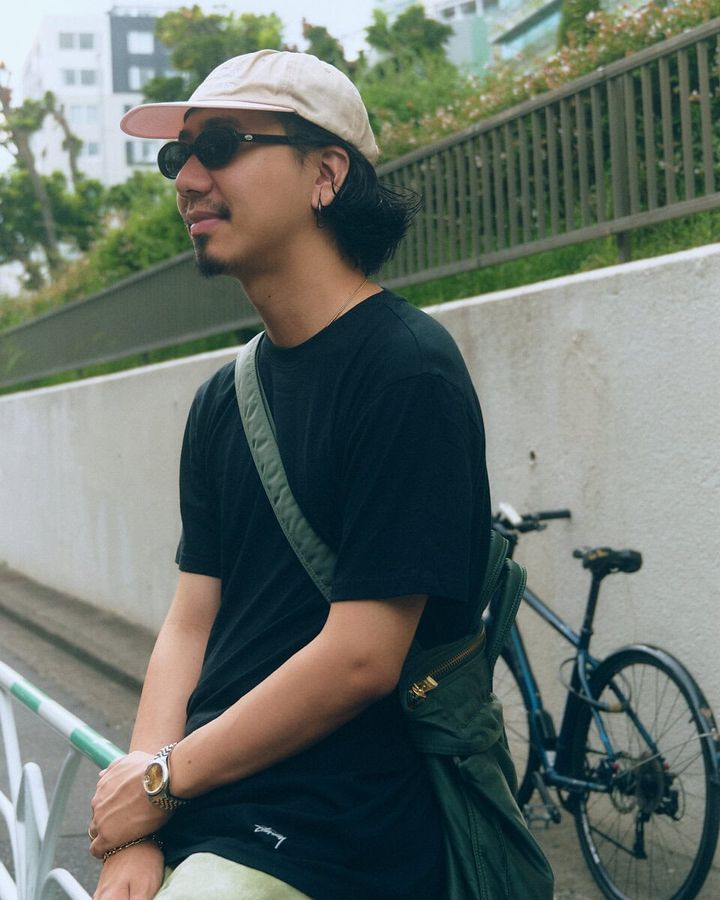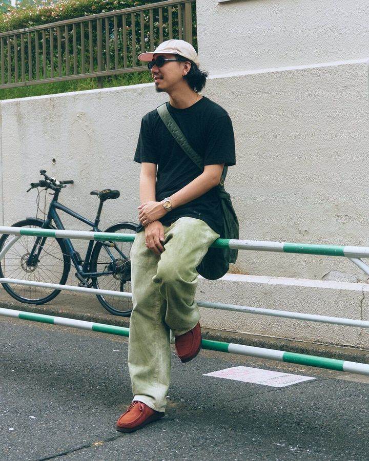 3. 【スナップ】キャップ、ジーンズ、シューズの3点に色モノを散らすとバランス良く収まるという好例
