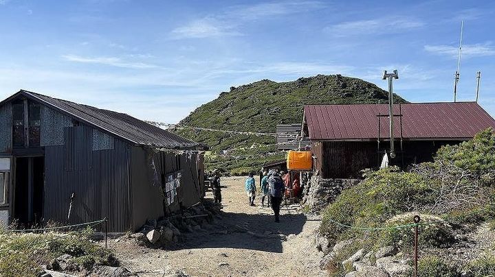20分ほど絶景を歩くと、歴史ある石造りの避難小屋「黒岳石室」があります。