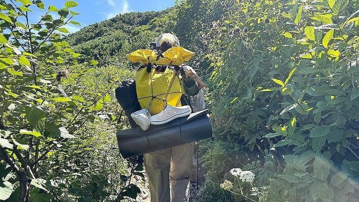 テントや寝袋などが入っていて、いつもより重たい荷物。