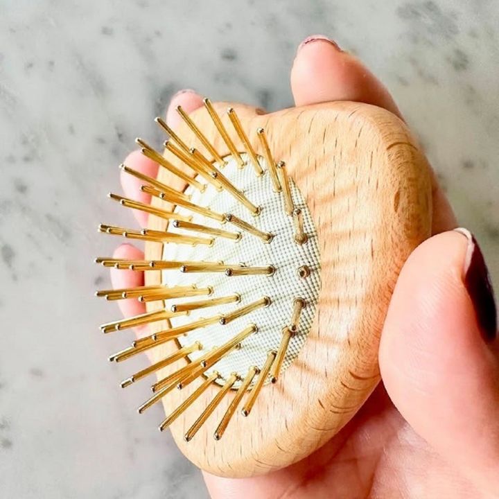 いくつか種類があるようですが、今回は手のひらにすっぽりおさまるサイズ感で持ち運びやすい「プレミアム FOX カッサ ウッド ミニハート ヘアブラシ」をお試ししてみました!