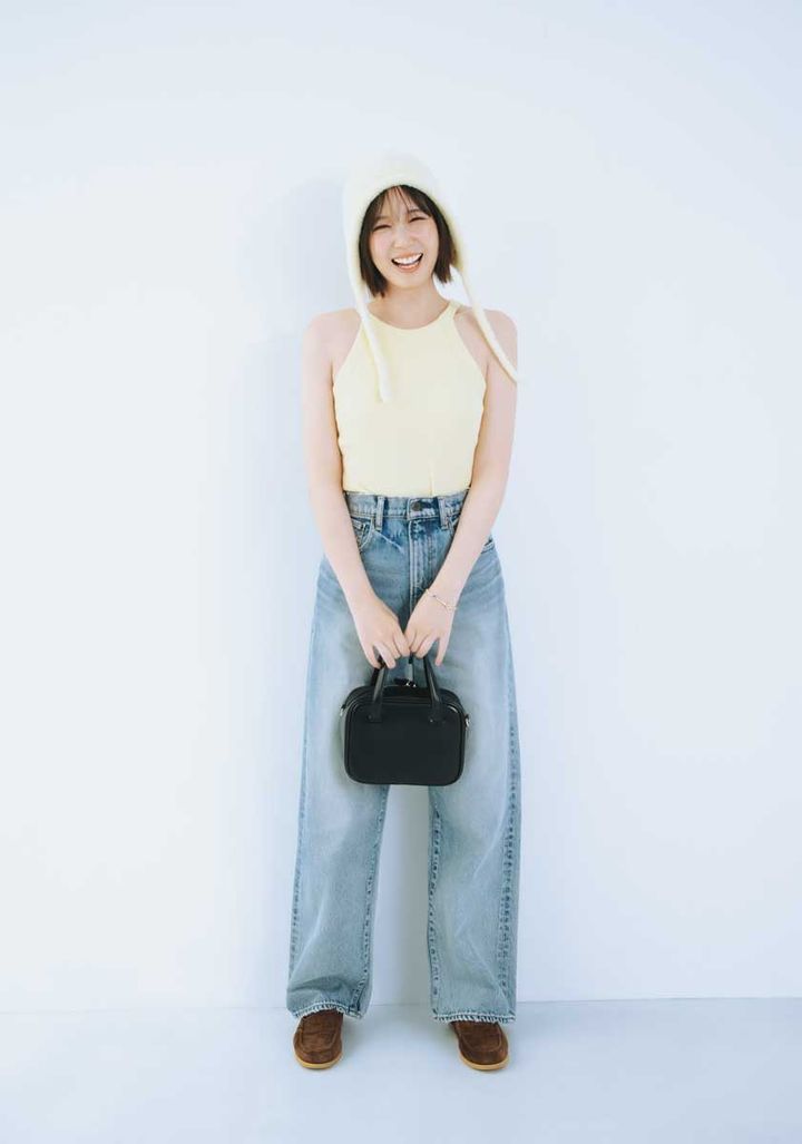 本田翼。ar9月号より ストレートパンツ『HW DAMAGE LOOSE STRAIGHT』¥15,180/ マウジー(バロックジャパンリミテッ ド) トップス¥5,940/シールームリン 神宮前店 帽子¥9,790/カンゴー ル(カンゴール ヘッドウェア) ブレスレット¥96,800/アイジェージュエリー バッグ¥41,800/ローソウル 靴¥29,700/ザ シシクイ