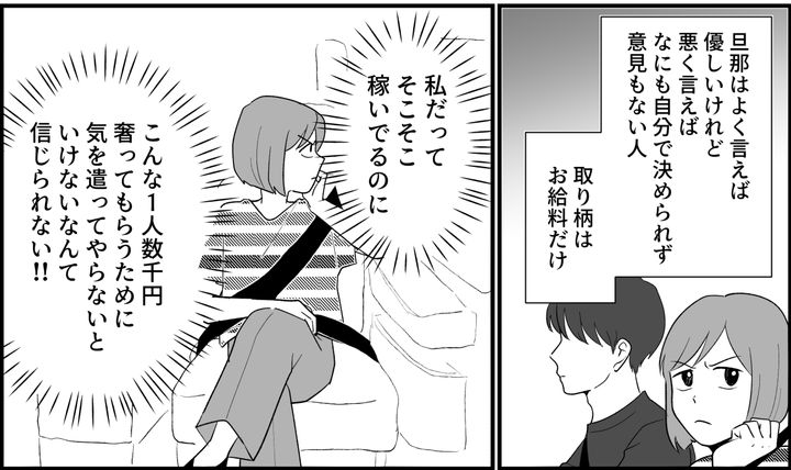 それもこれも、義両親の誘いを受けたのに、コース選びひとつ口出しできない旦那のせいだと思うんです。