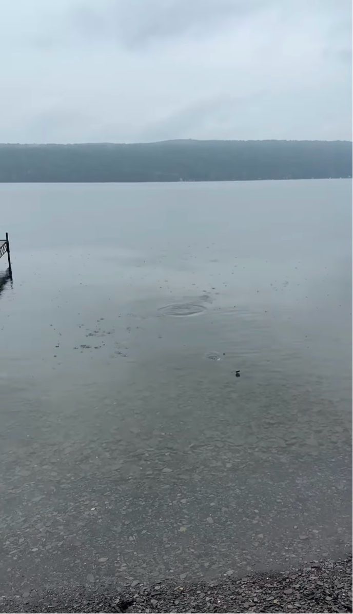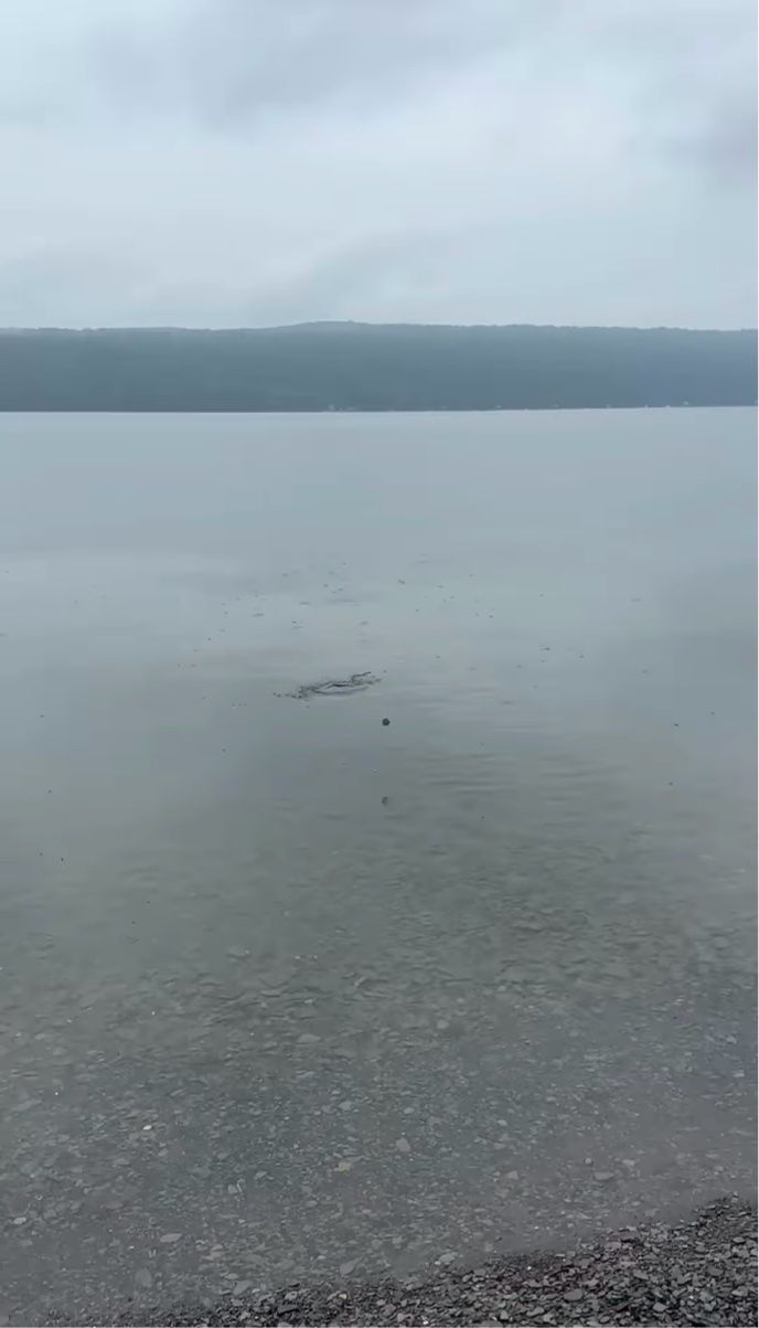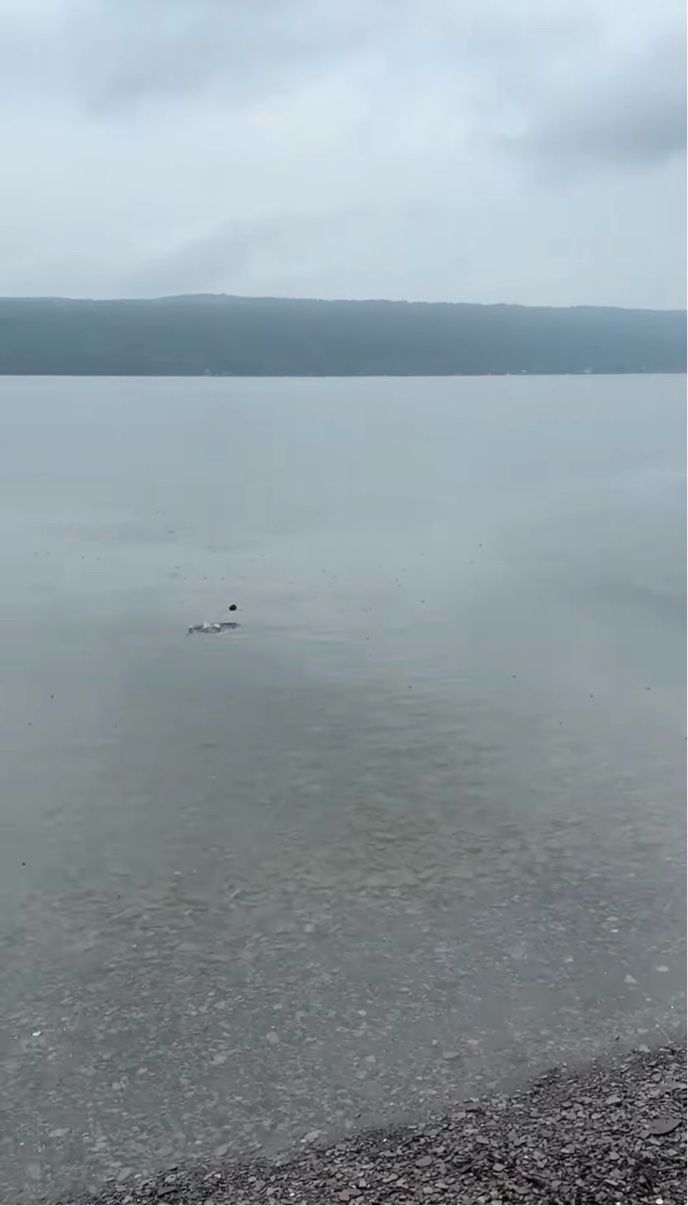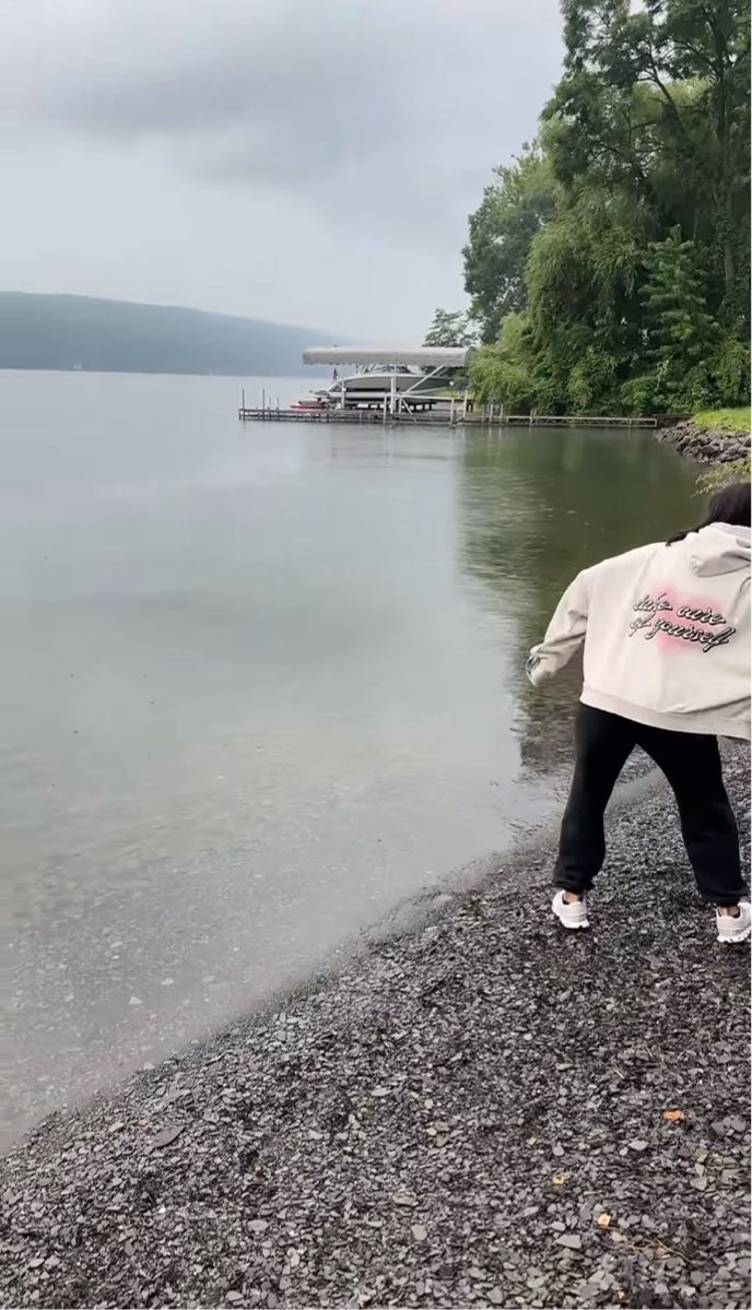 アメリカ・ニューヨーク州ケウカ湖で撮影されたこちらの動画には、水切りにチャレンジする女性の姿が収められています。
