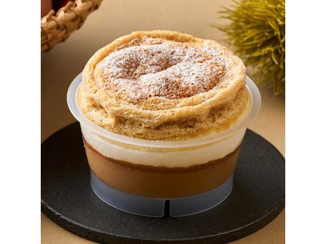 定番のしあわせスフレプリンにマロンフレーバーが登場!なめらかな食感のマロンプリンの上にキャラメルソース、ホイップクリームを重ね、ふんわり焼き上げたマロンスフレをのせています。秋の味覚を楽しめるこの時期ならではのスフレプリンです。 JANコード4907174138798