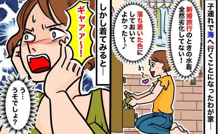 子どもが生まれてから家族で沖縄旅行に行くことになったときのことです。新婚旅行用に買ったときの水着をタンスから出すと、久々に見た水着は落ち着いた色で、かつ劣化もしておらず、このまま着れそう!とテンションが上がりました。しかし、私は衝撃を受けることになったのです――。