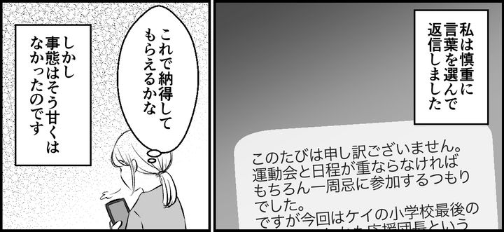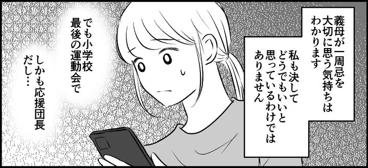3. <義父一周忌より運動会>「小学校最後だから…」欠席を決断。えっ義母からイヤミ連絡が【まんが】