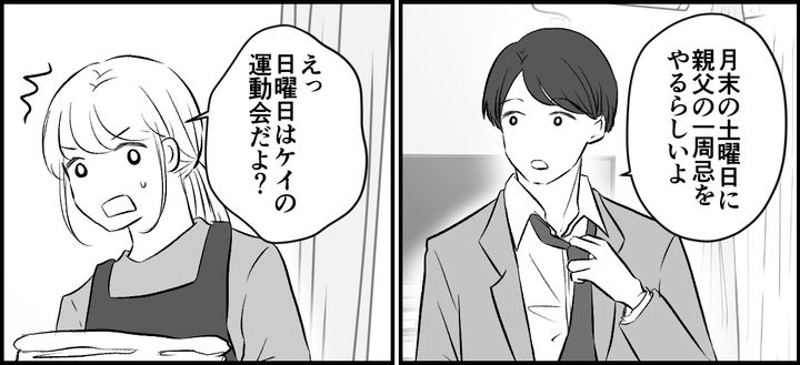 義父の一周忌と息子の運動会が重なり、私は夫に「運動会を優先したい」と伝えました。