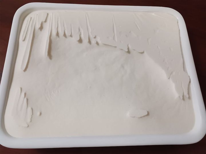 6.2時間ほど冷やしたら一旦取り出してスプーンでかき混ぜ、表面をならして再度冷やす。