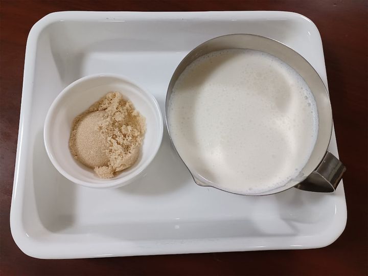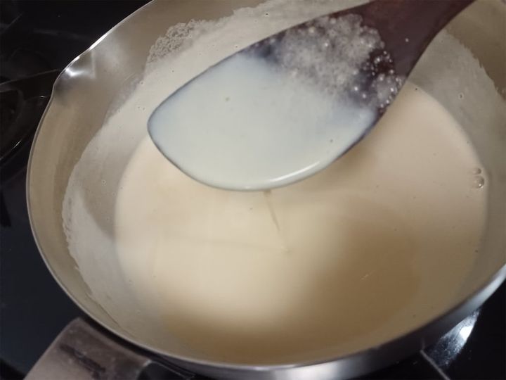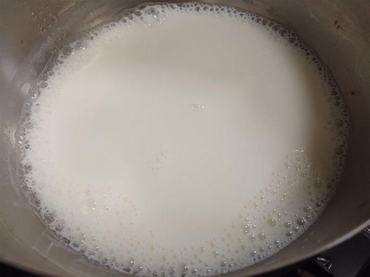 1.小鍋に牛乳を入れて沸騰直前まで温め、フツフツとしてきたら極弱火にする。