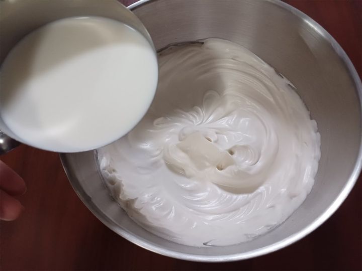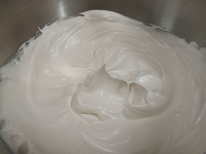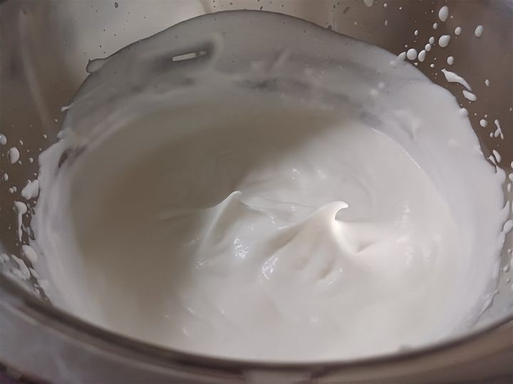 しっかり角が立つまで泡立ててください。ホイップクリームを加えることでリッチなアイスになります。