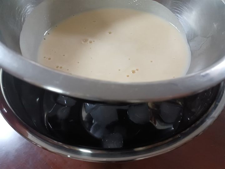 4.3をボウルに移し、氷水(分量外)を入れた冷却用のボウルに当てて冷やす。