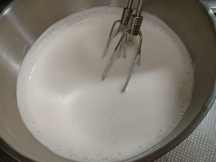 今回は、ハンドミキサーの力を借りました。