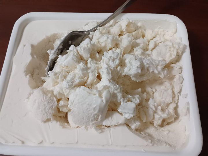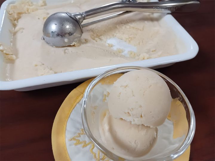 ほんのりクリーム色をしたアイスが出来ました♪