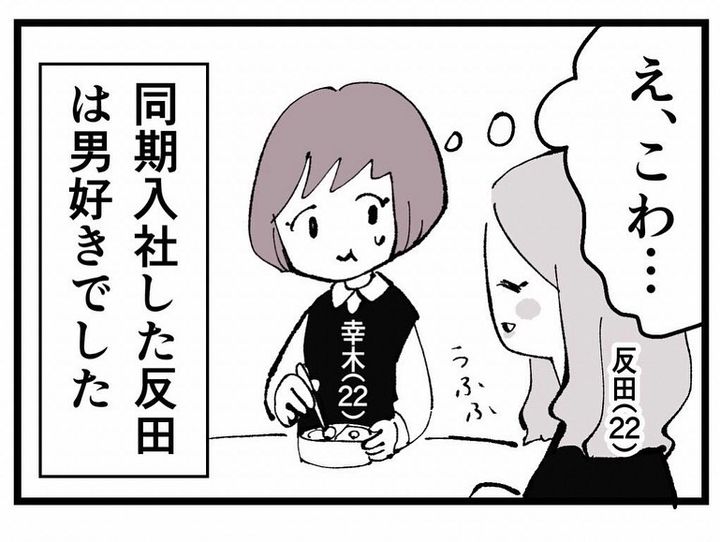主人公の浮かれた様子を見かねて、真剣に忠告してくれた同僚。しかし、「私のこと妬んでるんでしょ」とまったく聞く耳を持ちません。「私を見る目は本気だった」「私だけは他の女とは違う」…そんな万能感に包まれ、忠告を振り切ってしまいます。彼女のその自信は、果たしてどこから来るのでしょうか。