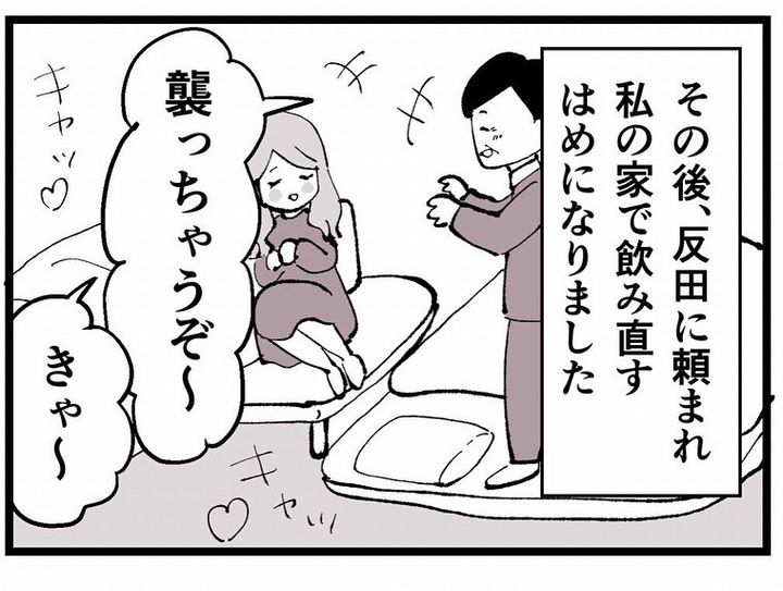 会社の飲み会で、憧れの部長といい雰囲気に。優しく話を聞いてくれる部長に、主人公の気持ちはどんどん高まっていきます。「本気で好きになっちゃって…」そう確信した彼女でしたが、そんな姿を見ていた同僚から「あの部長は妻子持ちだからやめときな」と釘を刺されてしまいます。舞い上がった気持ちに水を差され、主人公はイラッとしますが…同僚の忠告は、果たしてただのお節介なのでしょうか。