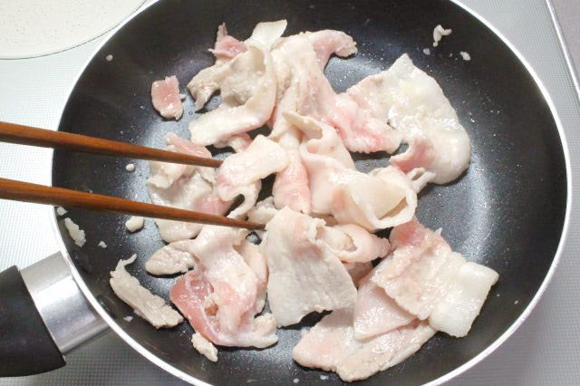 3分ほど炒めると、豚肉の色が白っぽくなりました。焼けたら一旦取り出しておきます。