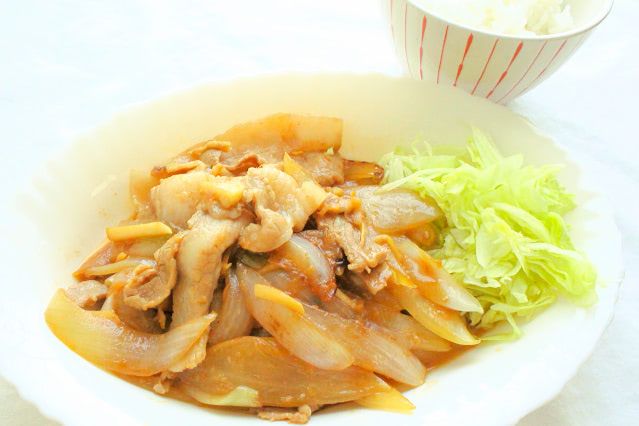豚肉、玉ねぎ、しょうがを一緒に口に入れると、しょうがの風味がしっかりと広がりながらも、バターのまろやかさが強く、マイルドで食べやすいお味♪豚肉もやわらかく仕上がっています。