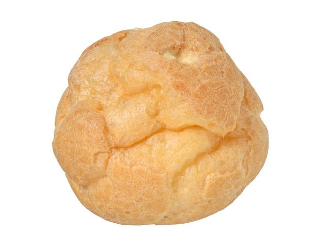 シュー生地を絞り、ふんわりしっとりと焼き上げたパン生地に、カスタードクリームをサンドしました。チョコレートを半掛けすることで、2種類の味を楽しめる菓子パンです。