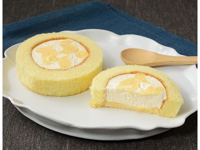 ふんわり生地と2層のとろけるカスタードクリームが楽しめるロールケーキ。