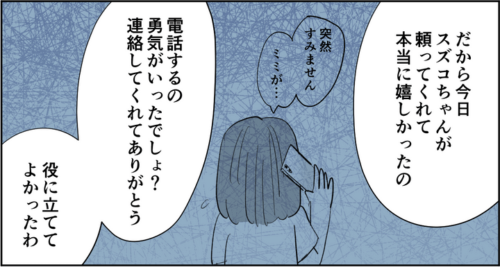 私はスズコ。義母の訪問を断り続けていたある日のこと、ミミが高熱を出してしまいました。私がすがるような思いで義母に連絡すると、義母はすぐに駆け付けてくれました。しかも、ミミのために大好きなイチゴやゼリーを持ってきてくれていたのです。ピンチのときだったからでしょう、義母の優しさが余計に身に染みました。こんなに優しい義母なのに、私は邪険に扱ったりして……。自分のしてきた行動を心底後悔しました。義母には感謝しかありません。