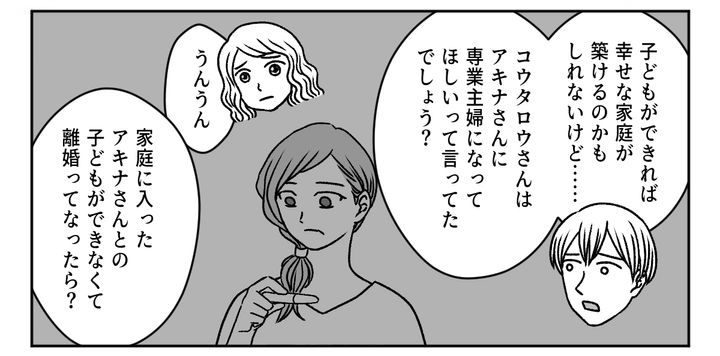 しかしコウタロウさんの場合は「子どもができる人」がいいから、もし姉と「子どもは作らない」となったときや姉が病気で子どもが作れなくなったら……あっさりと離婚を選ぶのではないでしょうか。