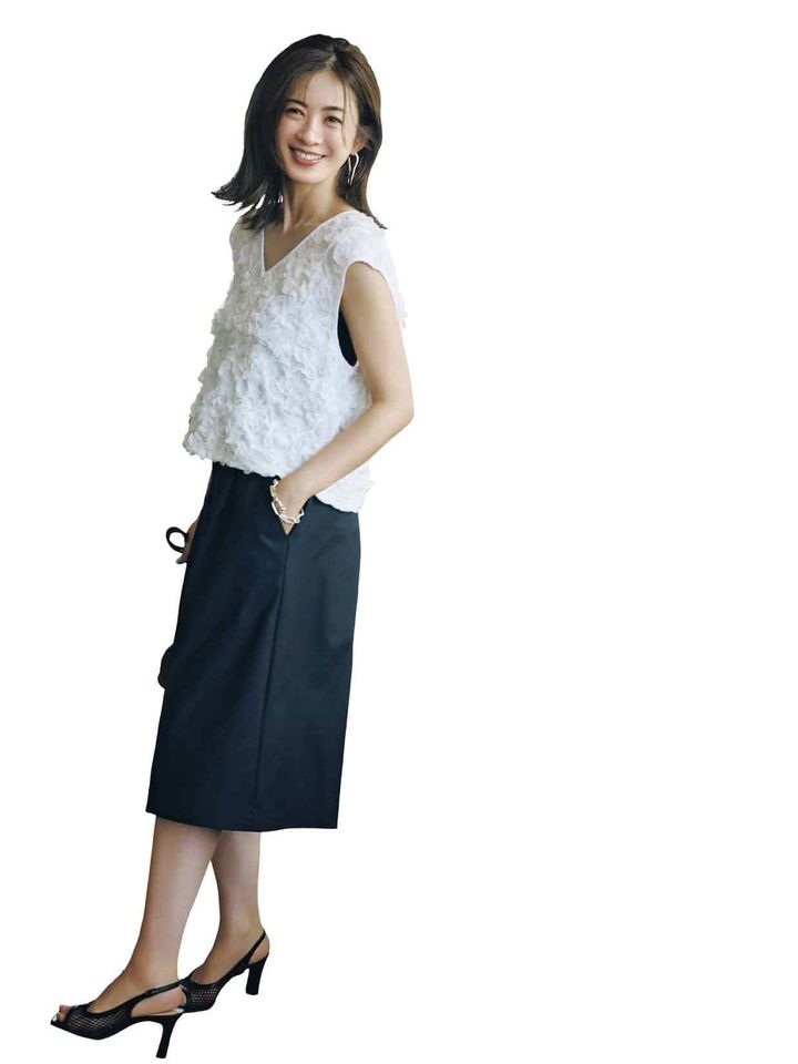 顔周りがパッと華やぐチュールブラウスはシャープなVのカッティングでキレをプラス。ワンツーコーデでもここまでの完成度!清楚な白トップスは背中見せ&ハーフパンツで軽やかさをON。