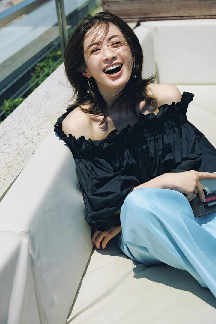 今、着たい服No.1といえば〝オフショル〟。ママOFF時間は大胆にデコルテ見せオフショルが華やかコーデのポイントに。ヘルシーな肌感を味方に、気負わずラフに女子会へ参戦!