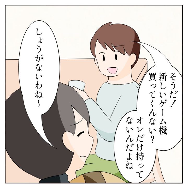 シュウトは「新しいゲーム機かってくんない?オレだけ持ってないんだよね。」と母におねだりを始めました。えー、あの点数で?まったく甘え上手なシュウト。母は案の定「ショウがないわね~」と目じりを下げています。