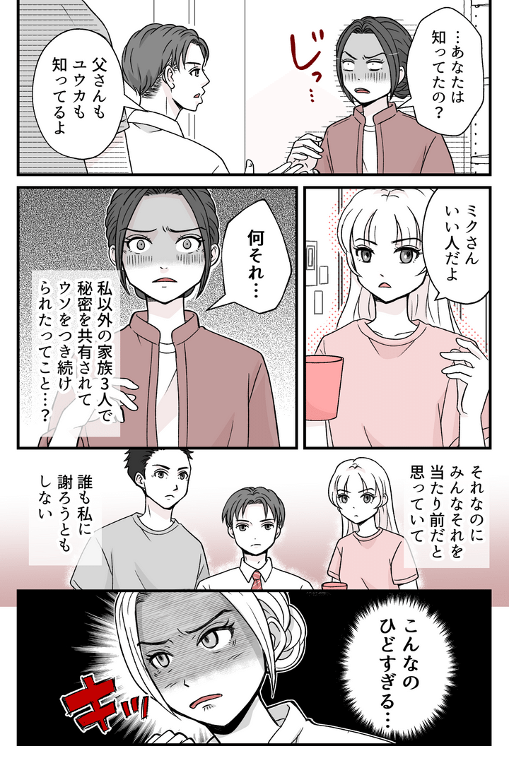 しかも一番ショックだったのは、旦那も娘も、息子に彼女がいたことを知っていたことです。