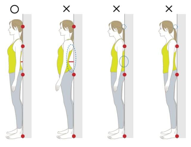 ▲かかと・お尻・肩甲骨・後頭部を壁にピタッとつけなければ、効果を得られないので注意!