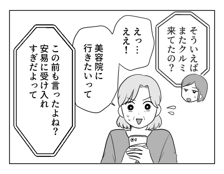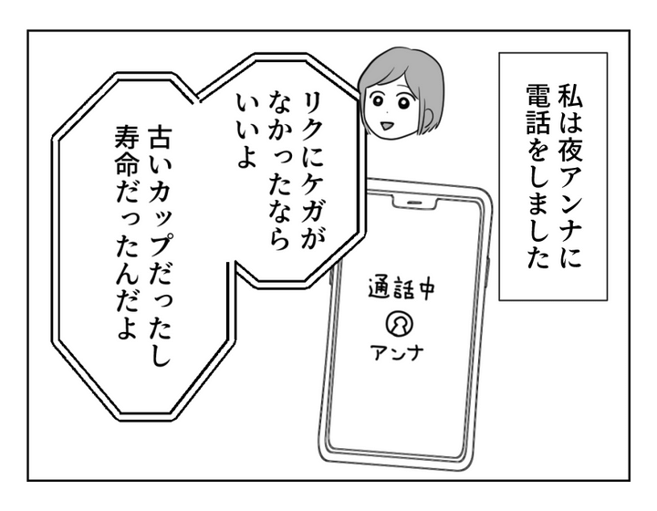 アンナさんは割れてしまったマグカップよりも、リクくんのケガの方を心配してくれていました。とても優しい心の持ち主なのですね! しかし、クルミさんが実家に来ていることに対して「また」という言葉を使いました。アンナさんが「また?」と思うくらい、クルミさんは頻繁に実家を訪れているのでしょう。そのことについて以前から母に話をしてきたアンナさんは、そろそろクルミさんと一度しっかり話さないとな……と思うのでした。
