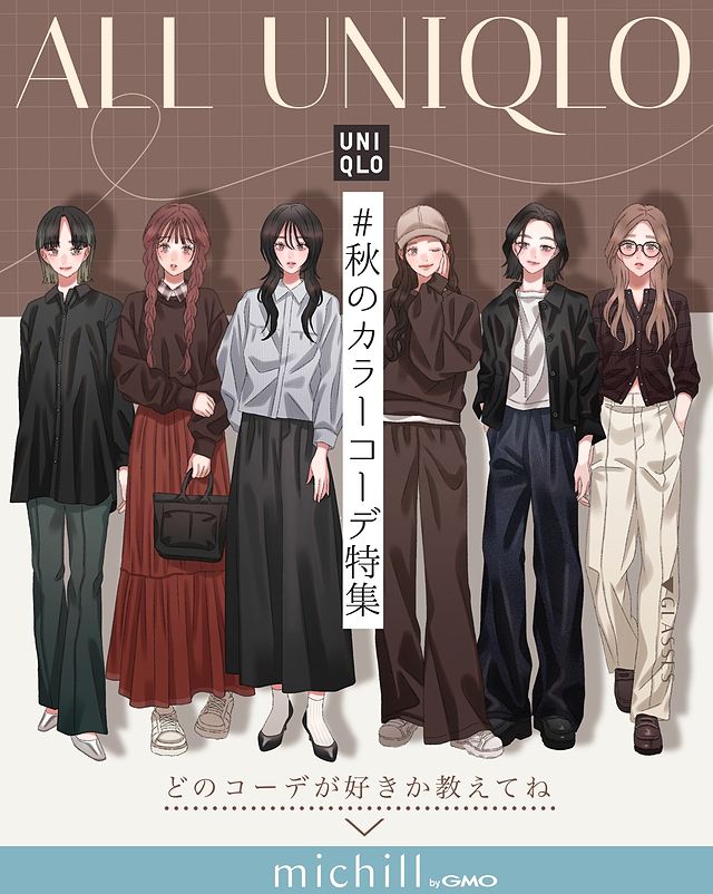 そろそろファッションにも秋らしい彩りを取り入れたくなるもの。今回michill編集部は、ユニクロアイテムだけで仕上げた6種類のカラーコーデをご紹介します。シックなモノトーンや、深みのあるブラウン・レッドを効かせた着こなしまで、カジュアルからフェミニンまで幅広く網羅。あなたの気分に合うコーデはどれ?