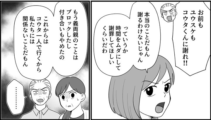 私にはなぜ父がそこまで怒るのか理解できません。だってすべて本当のことなのです。むしろ、時間をムダにした私たちに謝罪してほしいくらいの気持ちです。まぁそもそも、義両親のことはブロックして、付き合いもやめたので、今後は一切私たちには関係のない人たちなのです。