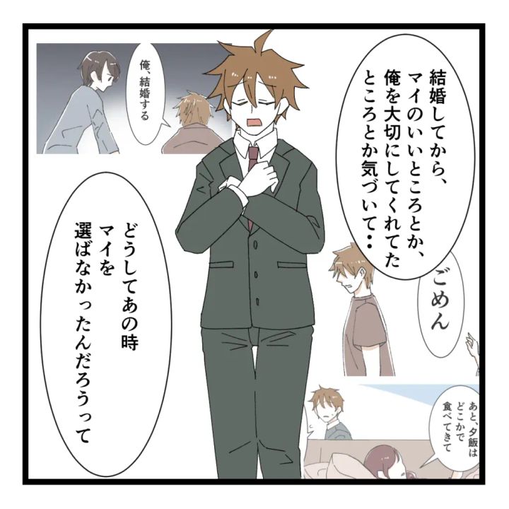 「結婚してから、マイのいいところとか、俺を大切にしてくれてたところとか気づいて・・どうしてあの時、マイを選ばなかったんだろうって」、