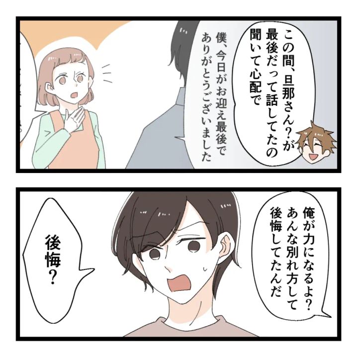 「この間、旦那さん?が最後だって話してたの聞いて心配で・・俺が力になるよ?あんな別れ方して後悔してたんだ」ヒロトさんがそう言うと、「後悔?」とマイさんが聞き返しました。