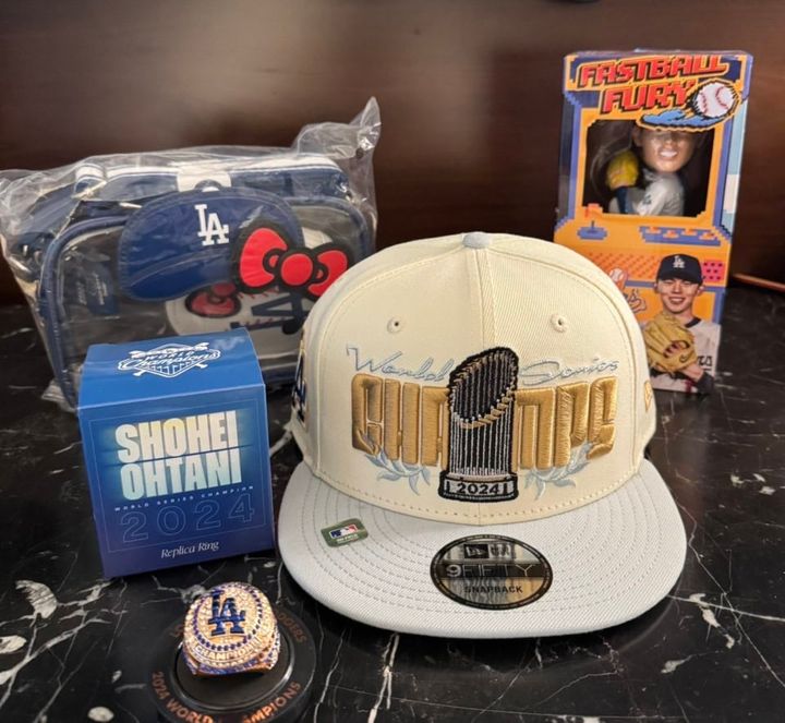 翌日8月6日は、私はアウトレットに行く予定があったのでドジャース観戦には参加できなかったのですが、大谷選手は二刀流でピッチャーとしても登板し、特別な試合だったようです。この日のgiveawayは大谷翔平選手のワールドシリーズリング。この日の夜に合流した学生時代の先輩夫婦が持っていて、可愛かったです。ちなみに、数日前にその先輩に「キティナイトも来ればいいのに。超可愛いバッグがもらえるよ!」と伝えたら、なんと一泊前倒しでL.A.に飛んで来て、キティナイトにも参戦したんですって。フッ軽・笑。