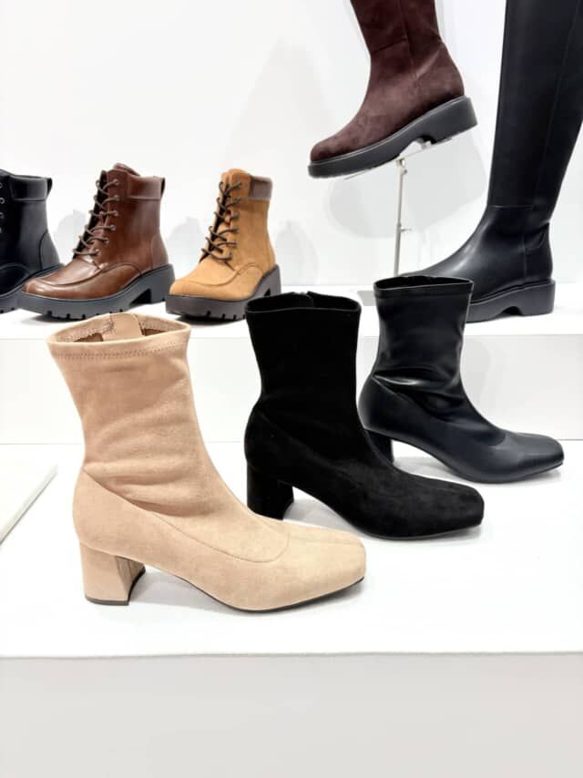 軽量EVA素材を使用した「ボリュームソールレースアップブーツ」は見た目に反して驚くほど軽く、長時間歩いても疲れにくいのが特徴。足首を細見せするリブ仕様の「ソックスブーツ」は、スカートにもパンツにも合わせやすく、大人世代のスタイルアップに最適です。さらに、クッション性を高めてアップデートされた「ウルトラストレッチヒールブーツ」も登場。