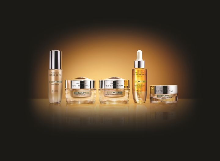 〈左から〉シクロNT セロム 30ml ¥20,900、シクロNT クリーム 50ml ¥19,800、シクロNT バーム 50ml ¥19,800、シクロNT クロノリペアオイル 30ml ¥19,800、シクロNT アイクリーム(専用マッサージツール付)15ml ¥12,100/エステダム