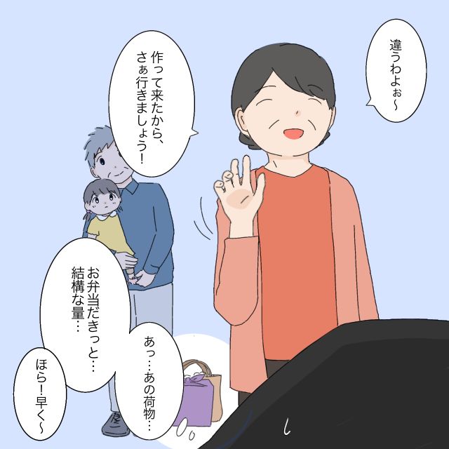運動会が終わって帰宅時間。留守番していたはずの義母がお弁当を持って現れた。聞かない義母|ママ広場マンガ