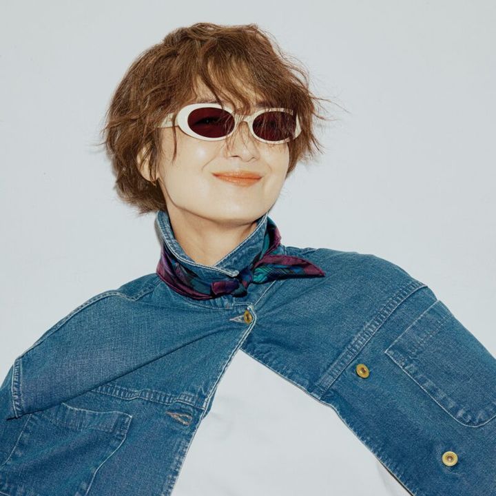 サングラス¥49,500/ディーエムワイ ステュディオス(アイシンク シブヤパルコ)、デニムジャケット¥46,200/ボニーウーブン×アルジット(クローバーズ)、中に着たカットソー¥16,500/ルームエイト(オットデザイン)、パンツ(9月下旬発売予定)¥50,600/エブール(リトルリーグ インク)、ベルト¥42,900/J&M デヴィッドソン(J&M デヴィッドソンカスタマーセンター)、チェーンリング¥277,200、太リング¥312,400/すべてヒロタカ(ヒロタカ 表参道ヒルズ)、スカーフ/スタイリスト私物