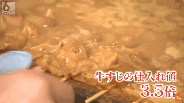 そんな「安くておいしい串カツ屋さん」がいま頭を痛めているのが“仕入れ”。仁さんが「めちゃめちゃ高くなった」と嘆く牛スジは、ここ5年ほどでなんと3.5倍に値上がり。店の名物というどて焼きは、調味料代などを含めると「トントン」だというが、それでも3本495円の手頃な値段でがんばっている。