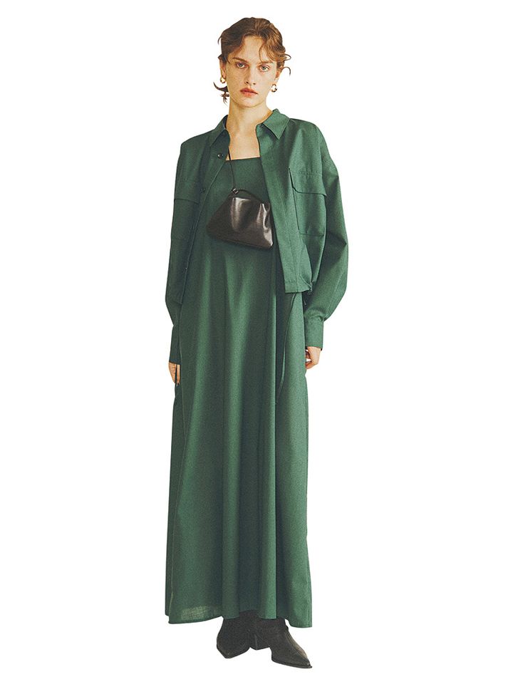 【POINT】ミニマルだけど必要な身ごろは確保した短丈フォルムは、上品ながらもエフォートレスな佇まいを約束。深すぎないグリーンで重厚感のない親しみやすい知性をプラス。
