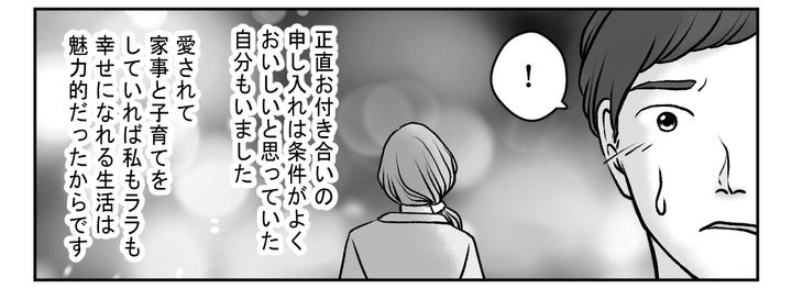 私は、お付き合いをすることをやめました。正直、コウタロウさんのお付き合いの申し入れは、条件がよくおいしいと思ってしまっている自分もいました。でも、コウタロウさんは私やララを愛しているわけでは……ないようですね。私は、今後誰かと再婚することになっても、私のこととララのことを愛している人と結婚して、家族で相談し合いながら未来を決めていけたらいいなと思っています。