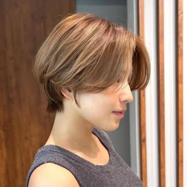 今シーズンのトレンドカラーは、赤みを抑えたベージュやグレージュなどの「透明感ヘアカラー」。重く見えやすいショートヘアでも、透け感のある色味を選ぶことで一気に軽やか&若々しい印象に変わります。